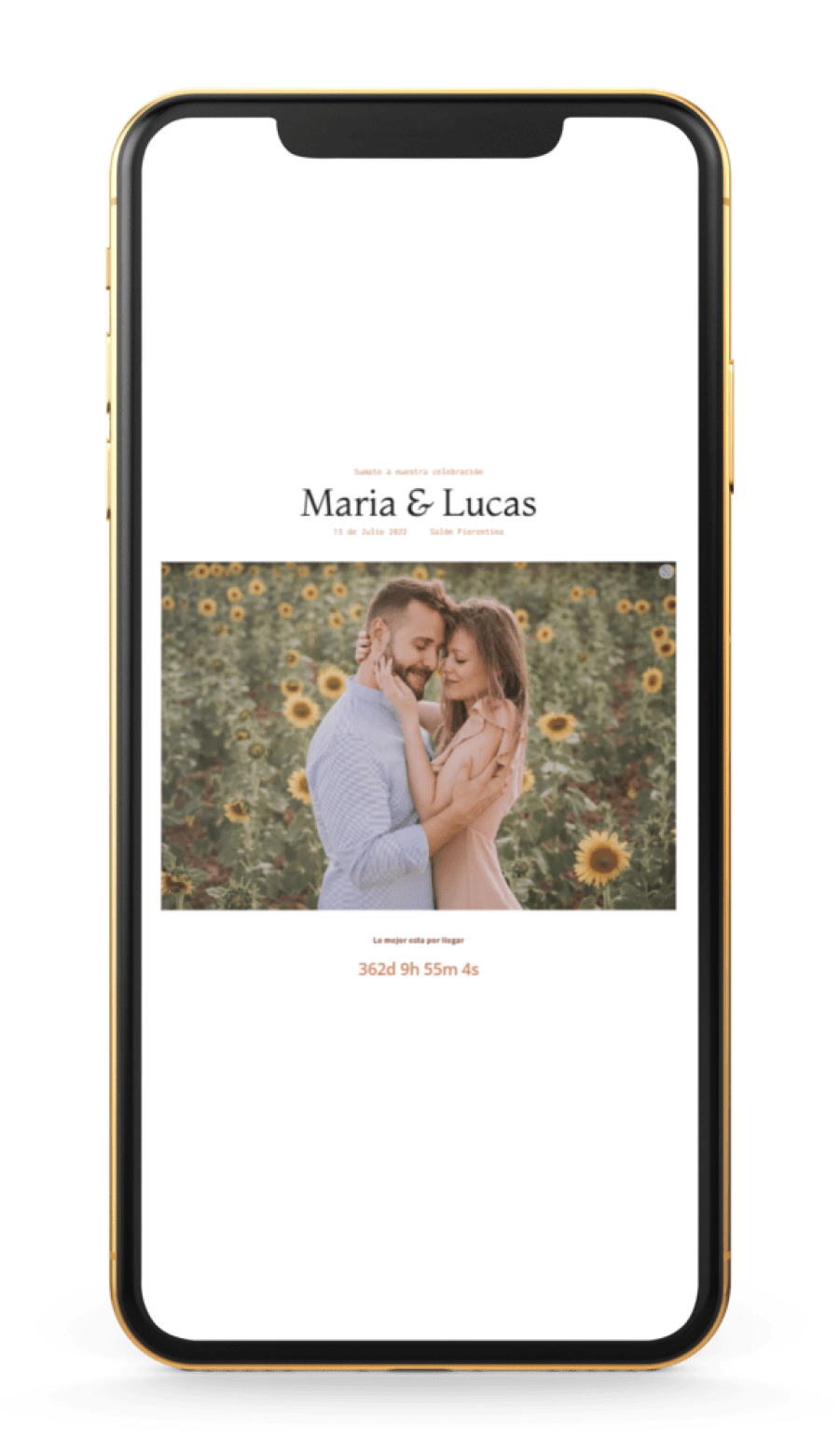 Nuestras invitaciones incluyen una cuenta regresiva incorporada, agregando un toque de anticipación.